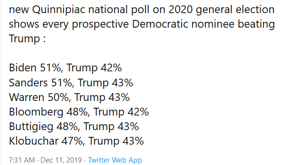How anybody could think any of those people are better than trump, even with terminal TDS, just amazes me. It really does. Yang maybe, but the rest??