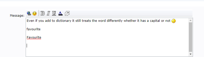 Even if you add to dictionary it still treats the word differently whether it has a capital or not