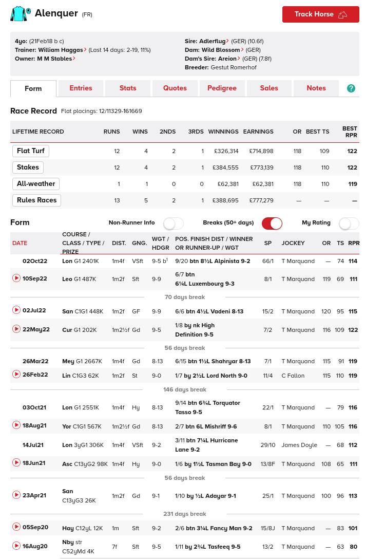 On form looks like a 2000-2400m horse. Any chance over 1600m?
