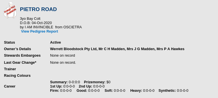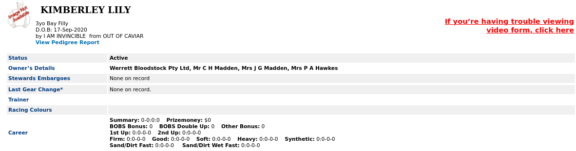 Her first 3 foals seemed to have been bred by the racing group. - bred by Mr NJR Werrett, Mrs P A Hawkes, Mr & Mrs C H Madden, Mr & Mrs D M Taylor, Mr & Mrs G J Wilkie, NSW Her 4th foal was bred by Mr Wilkie Her next two were bred by Werrett.