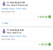 And Yum wins the Listed Maloney Stakes for 3yo fillies today making it two wins and a 3rd from just three starts.
