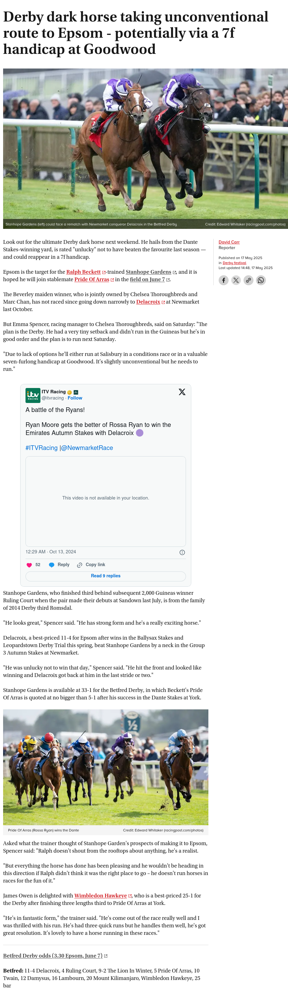 Thanks VSP, hadn't looked at the Darley line-up this season.
