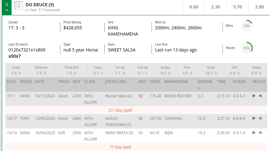 G1 Japan Cup won fav. Do Deuce with last to first finish.