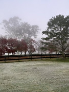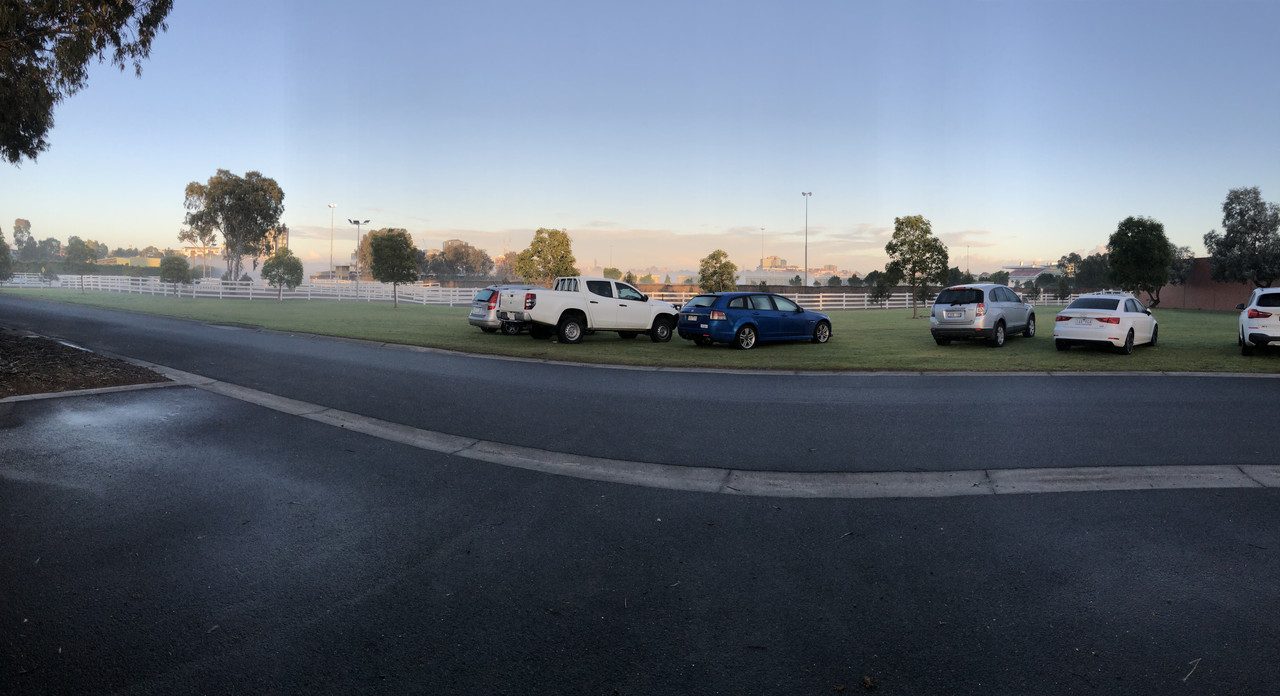 Flemington the other morning. Thought it looked cool with the clear skies basically everywhere and only the track covered in a thick fog.