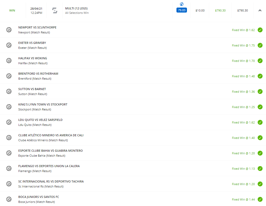 That's impressive TJ. 12 leg multi. Even Rusty will tell you though that bookies absolutely love taking those sorts of bets.